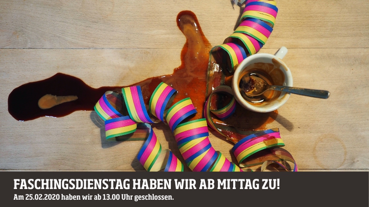 Am Faschingsdienstag, 25.02.2020 haben wir ab 13.00 Uhr geschlossen. Wir wünschen allen „Mäschgerle“ und „Fasnetgehern“ viel Spaß. Eventuell schon mal vorab schauen, ob Zitronen im Haus sind – der Espresso mit Zitrone danach hilft – auch wenn er grauslich schmeckt.